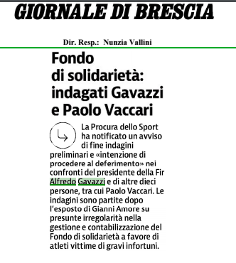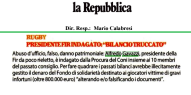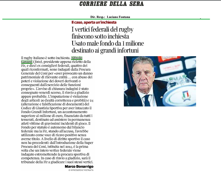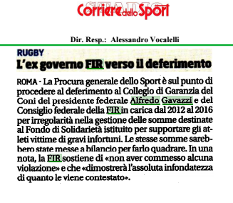 Indagine della Procura Generale del Coni sul Consiglio FIR – Testate varie