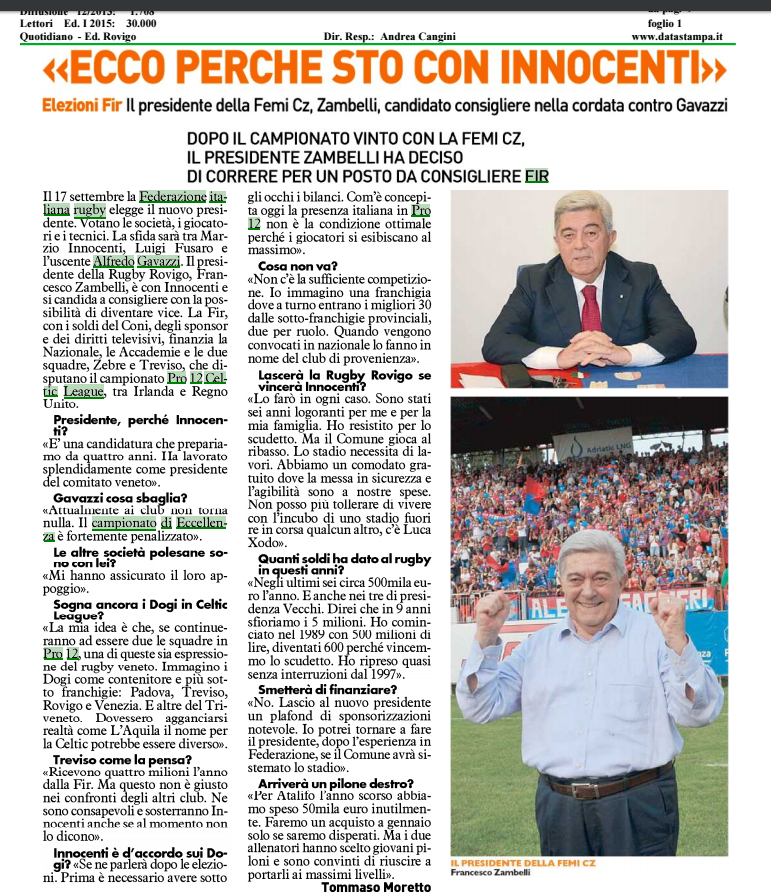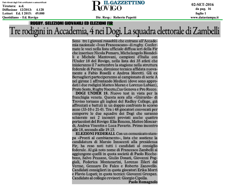 L’articolo su On Rugby