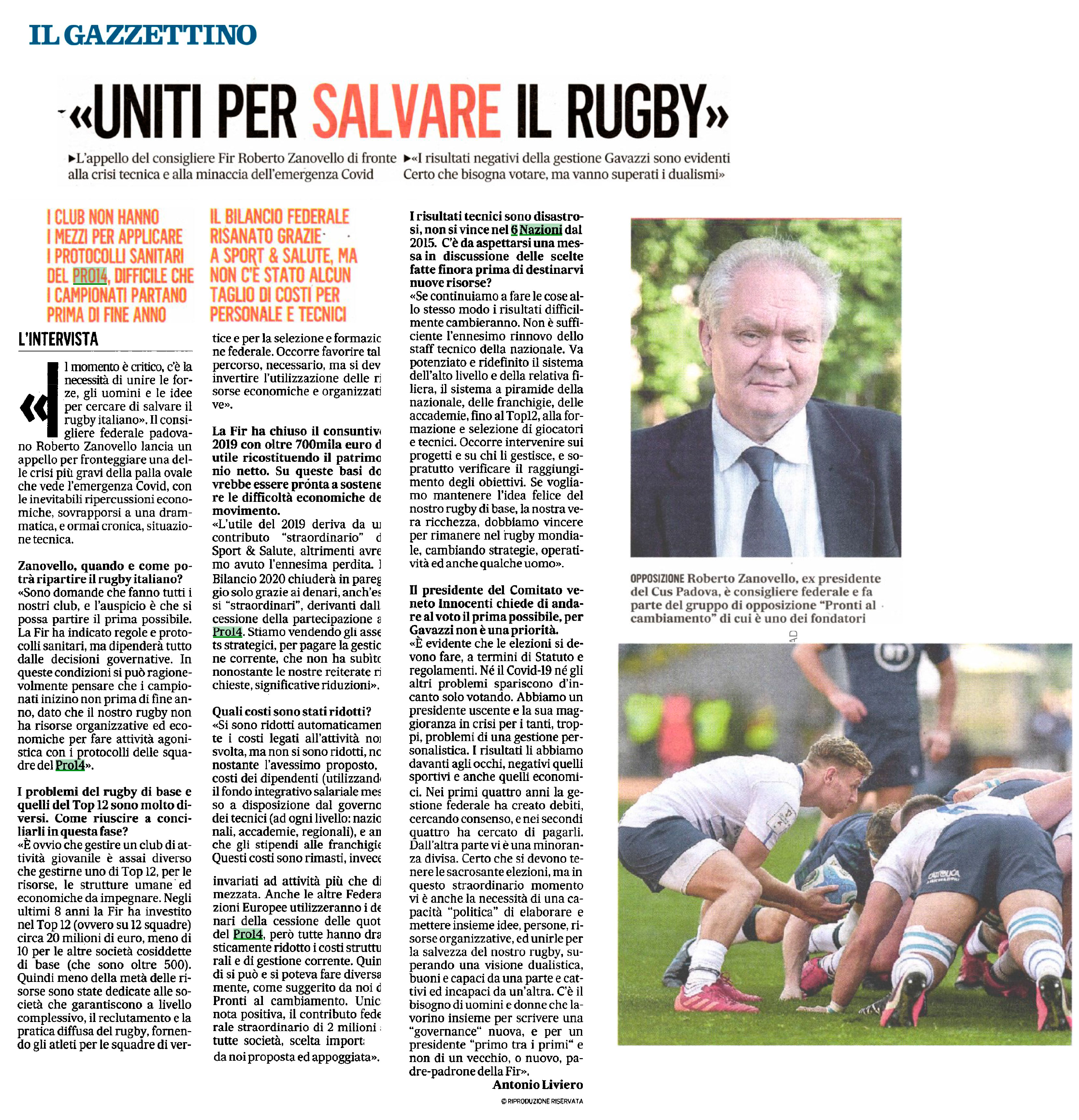 Sul Gazzettino del 31 agosto 2020 un’intervista a Roberto Zanovello, consigliere Federale e tra i fondatori di Pronti al Cambiamento.